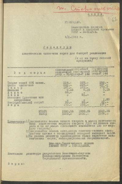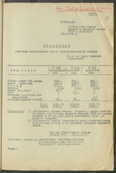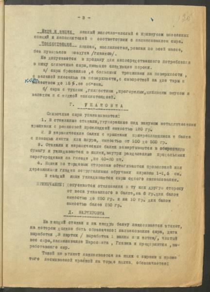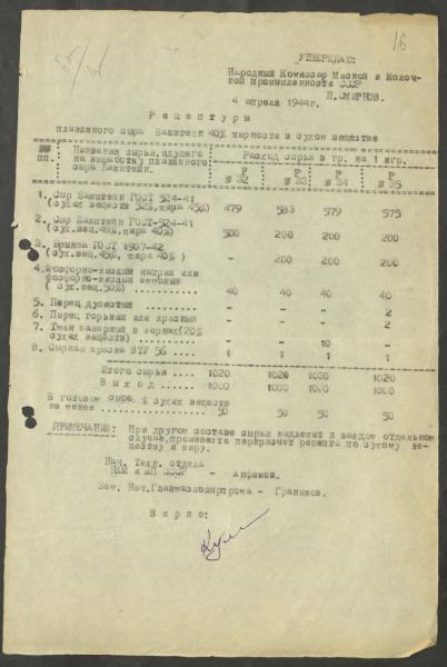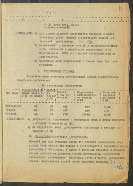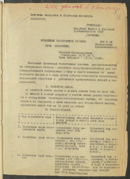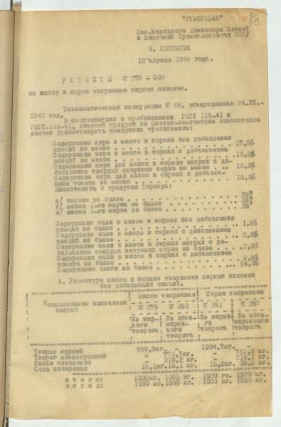 Fonds: ''Rīgas piena kombināts'', valsts uzņēmums. Lieta: Kombināta produkcijas ražošanas tehniskie noteikumi, receptes un asortiments.
