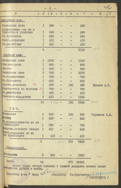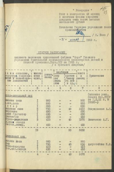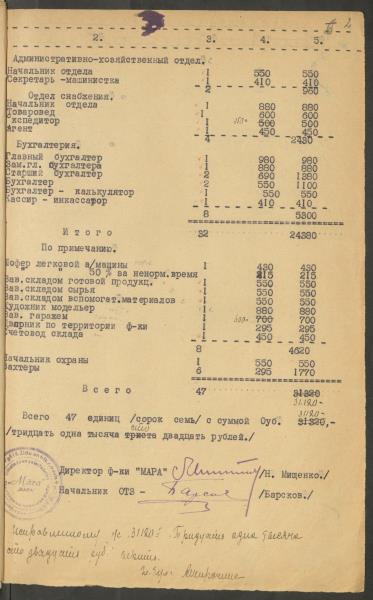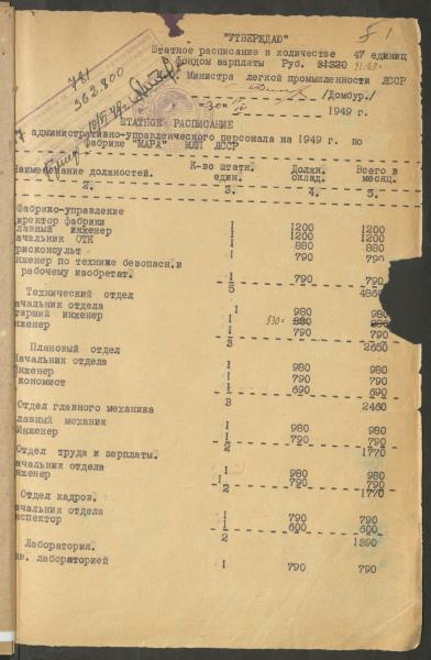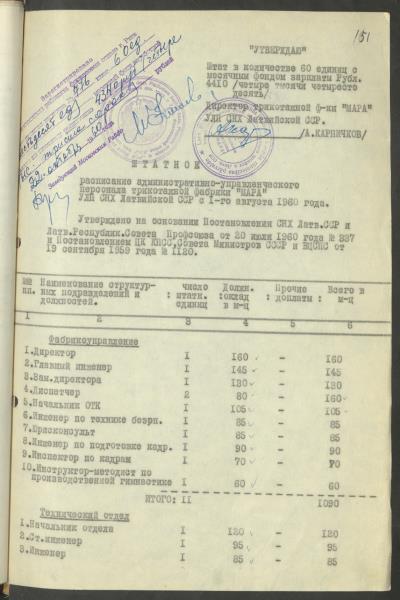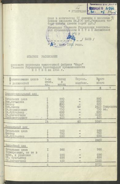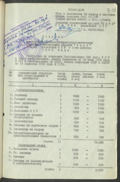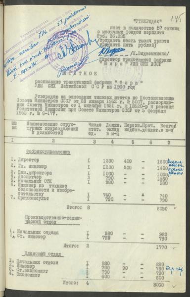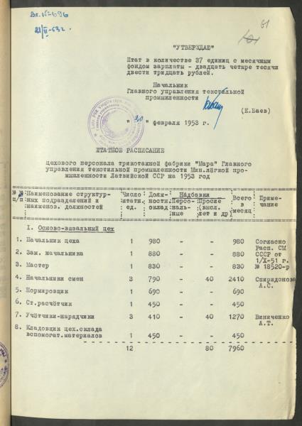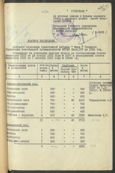 Fonds: Māra, valsts uzņēmums. Lieta: Štatu saraksti.