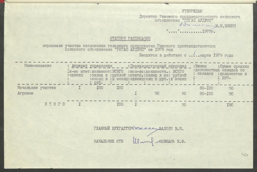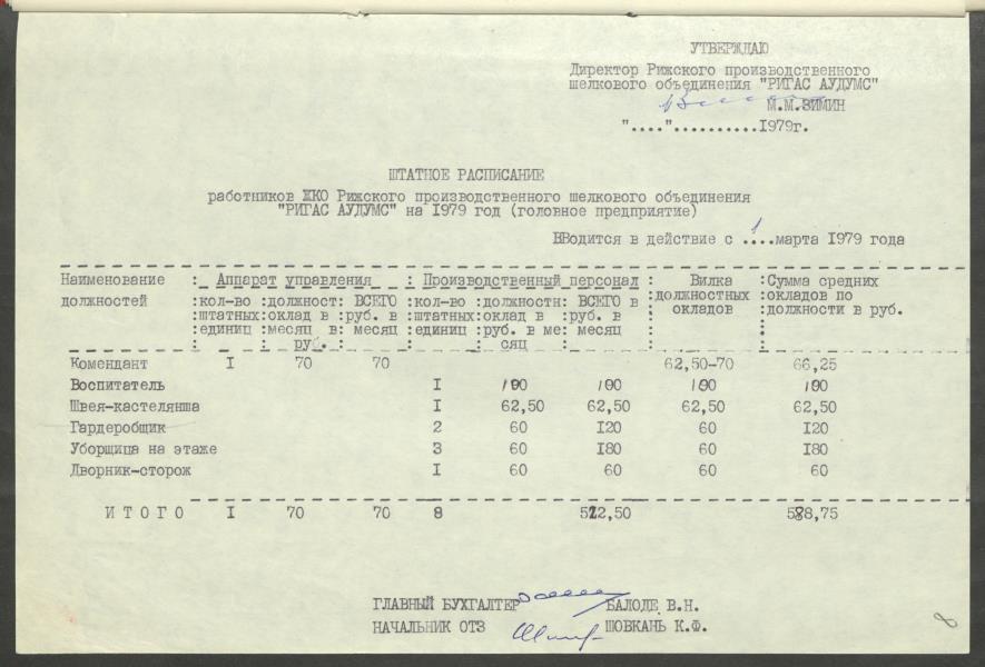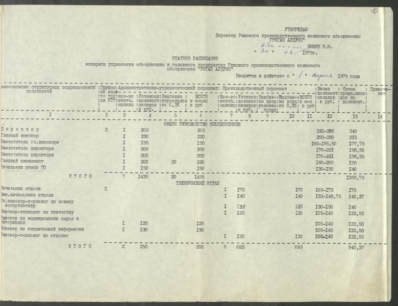 Fonds: Rīgas audums, valsts uzņēmums. Lieta: Štatu saraksti.