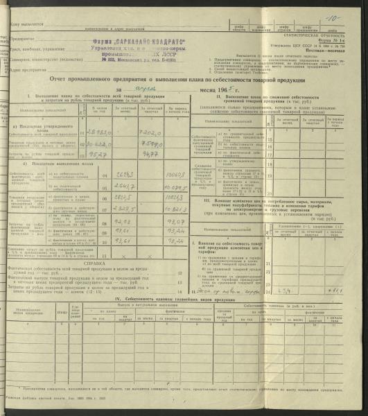 Fonds: Kvadrāts, akciju sabiedrība. Lieta: Atskaites par ražošanas plānu izpildi.