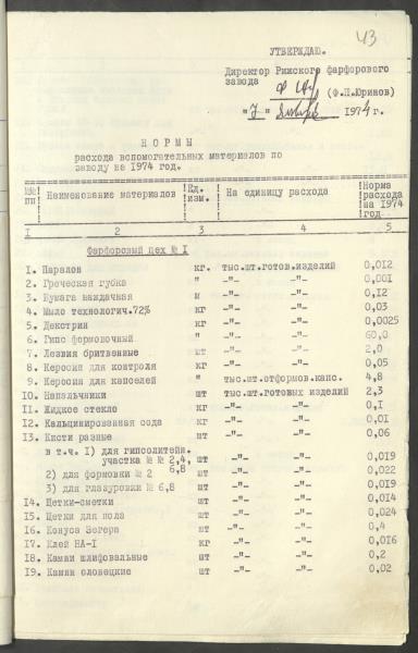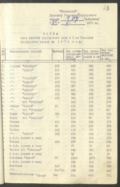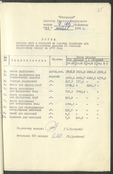 Fonds: Rīgas porcelāns, akciju sabiedrība. Lieta: Ražošanas materiālu normatīvi.