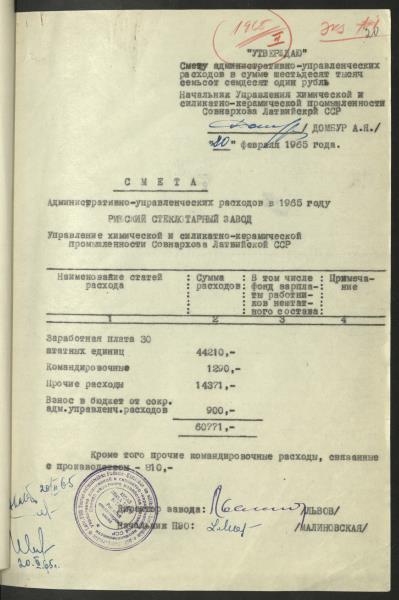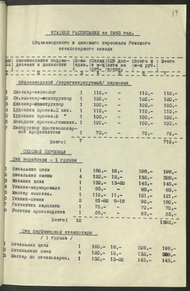 Fonds: Latvijas PSR Vietējas rūpniecības ministrijas Rūpnīca "Rīgas stikls". Lieta: Štatu saraksti.