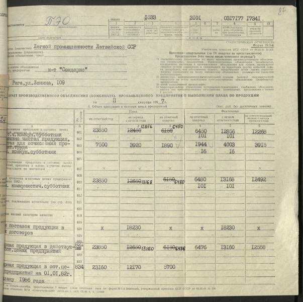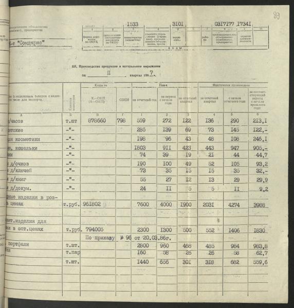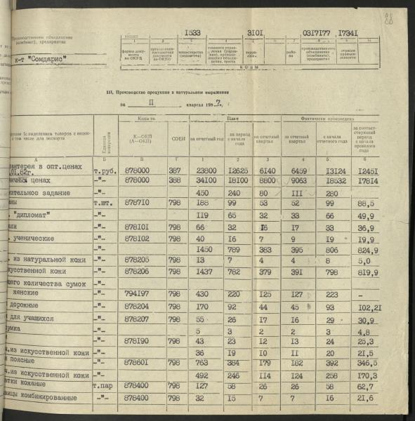 Fonds: Somdaris, akciju sabiedrība. Lieta: Pārskati par rūpniecības produkcijas ražošanu.
