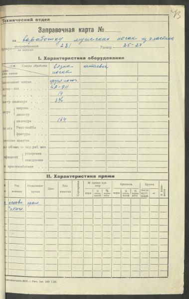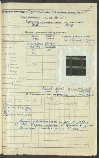 Mākslinieciskās laboratorijas tehniskās nodaļas izstrādājumu ražošanas kartes.