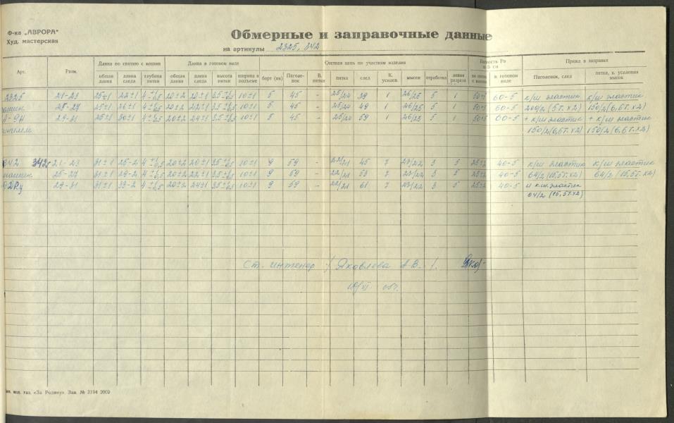 Fonds: Aurora, akciju sabiedrība. Lieta: Mākslinieciskās laboratorijas tehniskās nodaļas izstrādājumu ražošanas kartes.