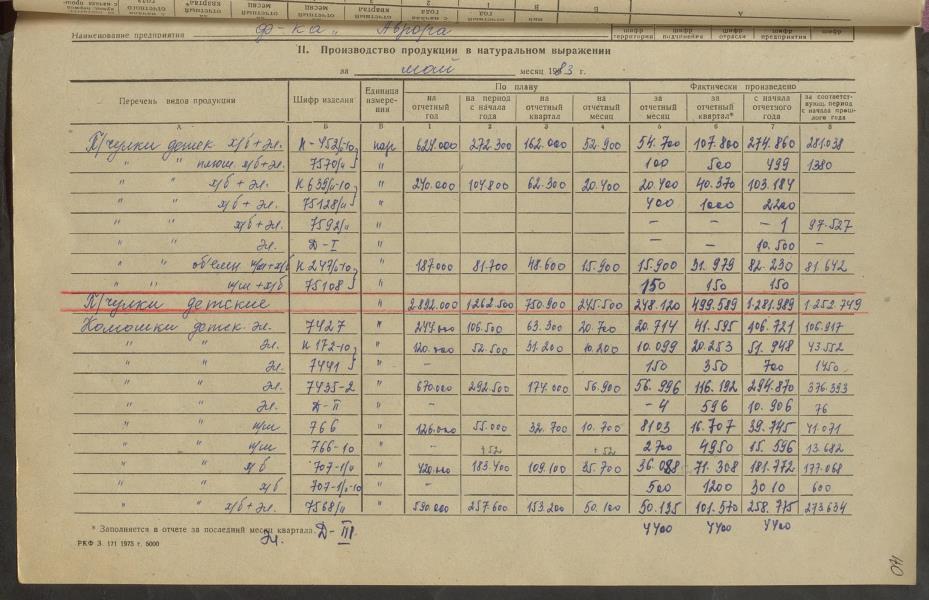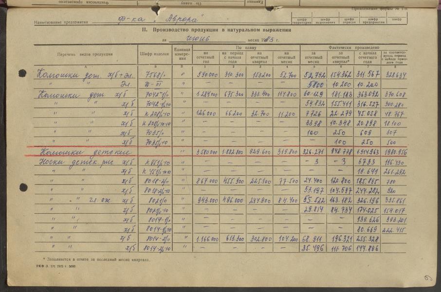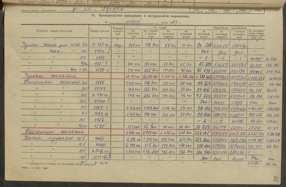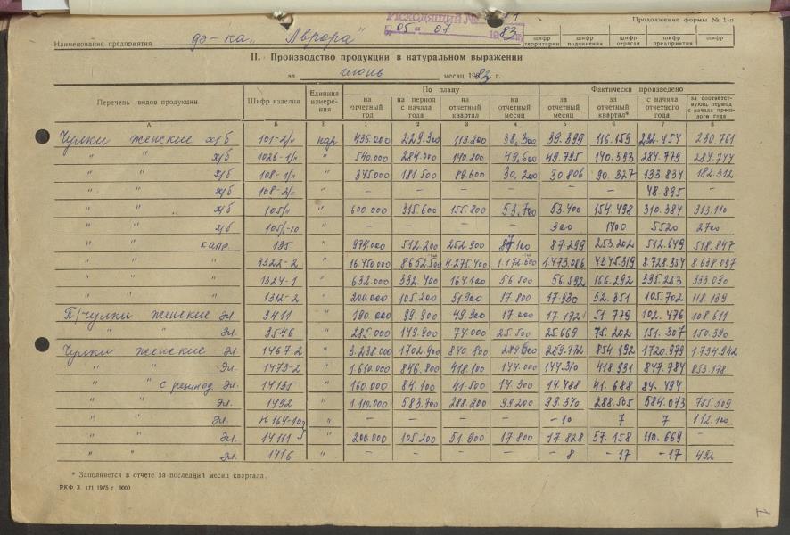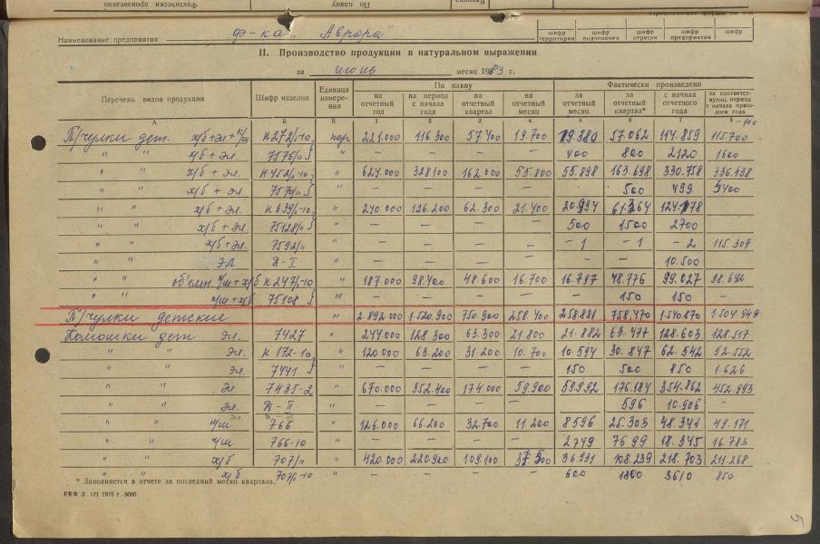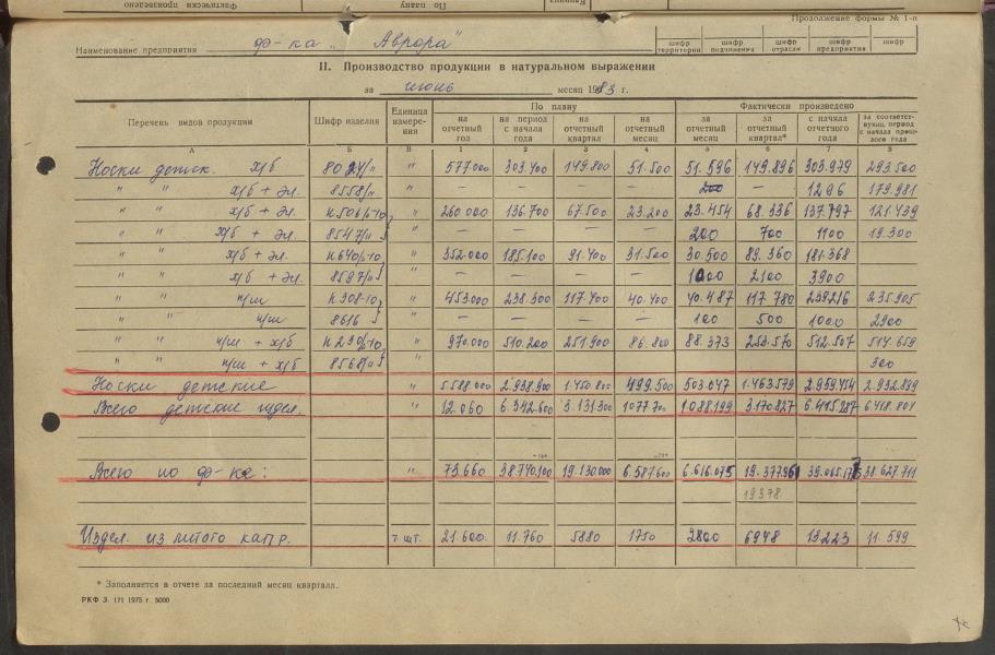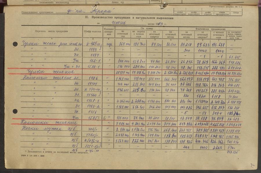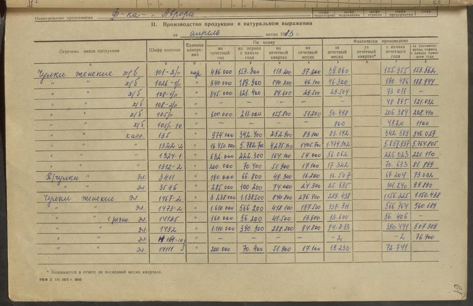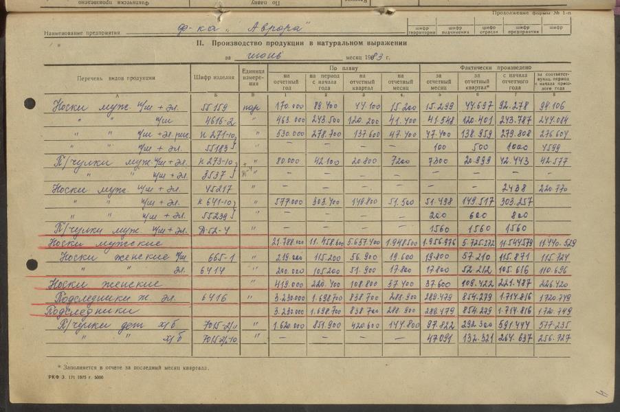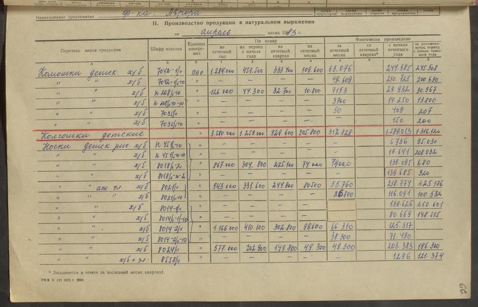 Fonds: Aurora, akciju sabiedrība. Lieta: Ražošanas plāna izpildes statistikas pārskati.