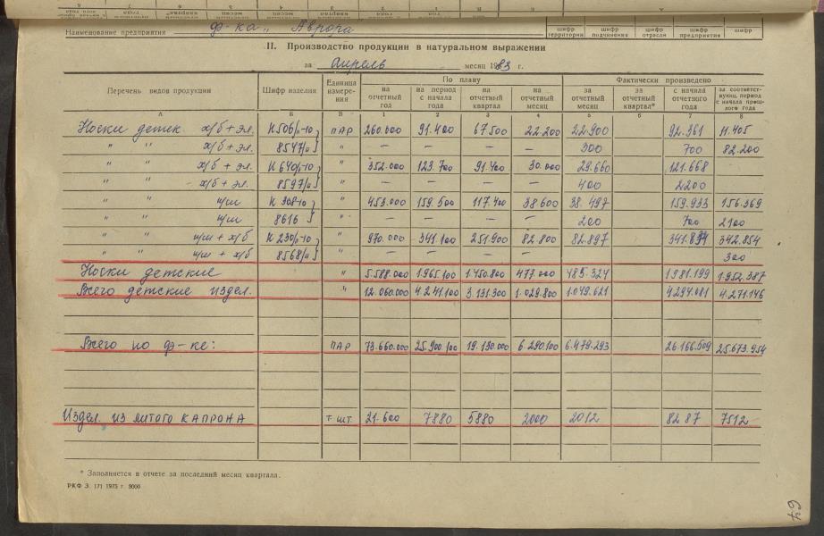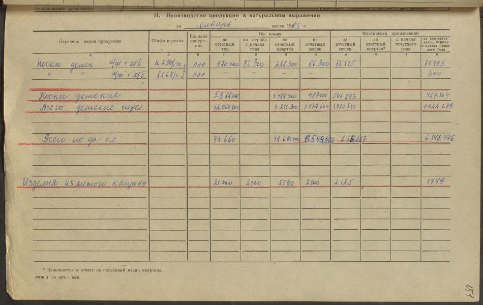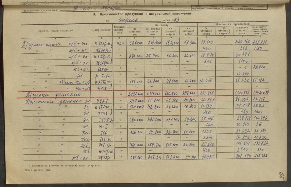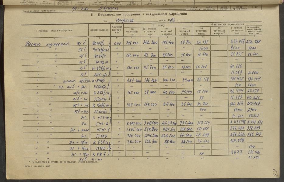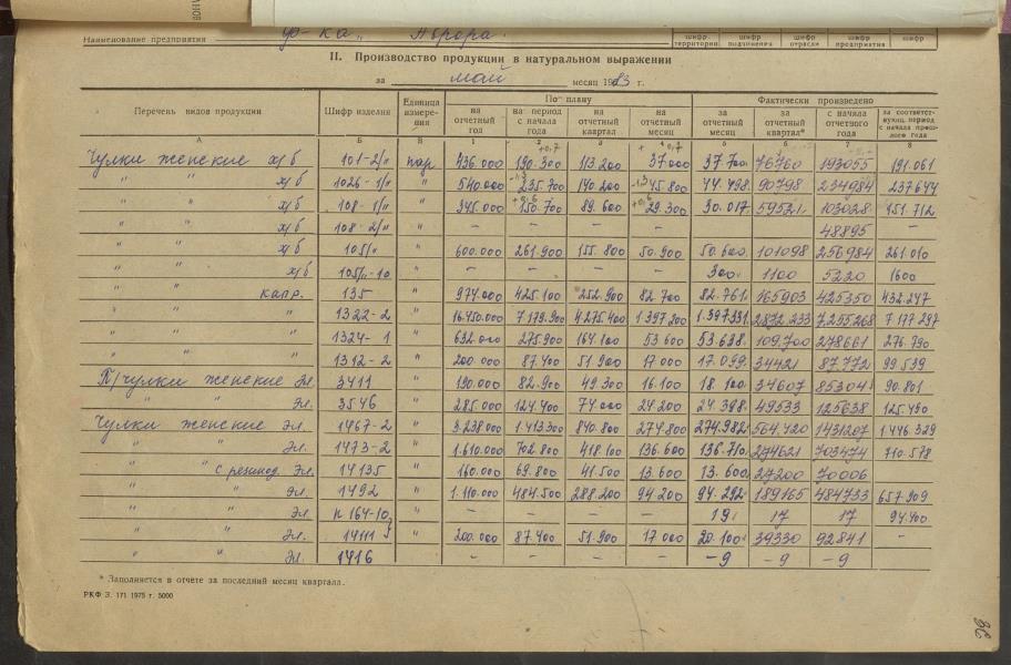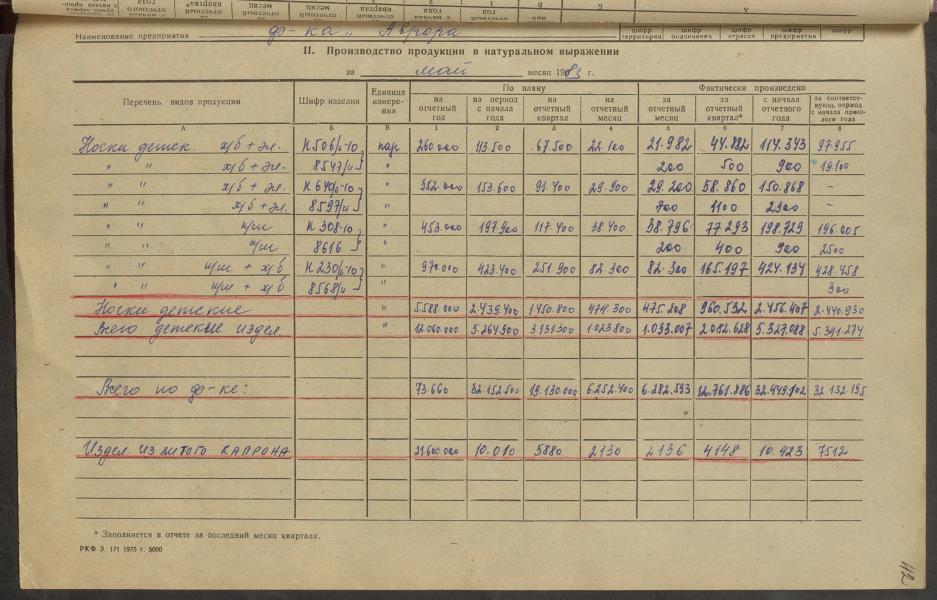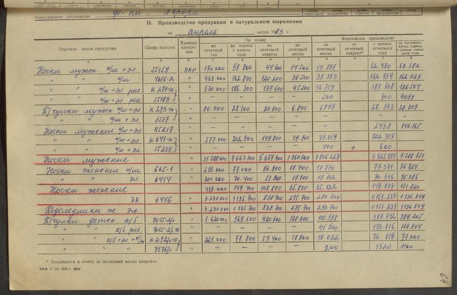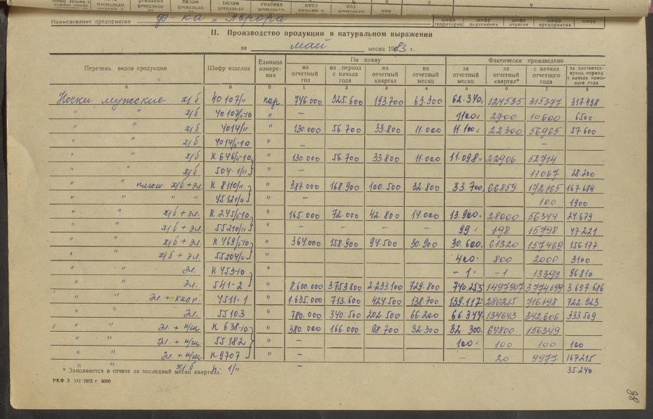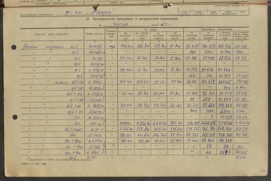 Fonds: Aurora, akciju sabiedrība. Lieta: Ražošanas plāna izpildes statistikas pārskati.
