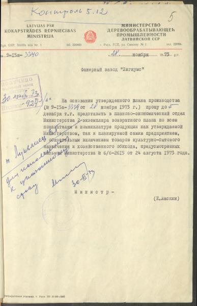 Fonds: Finiera rūpnīca "Lignums". Latvijas PSR. Lieta: Ražošanas plāns 1974.gadam.