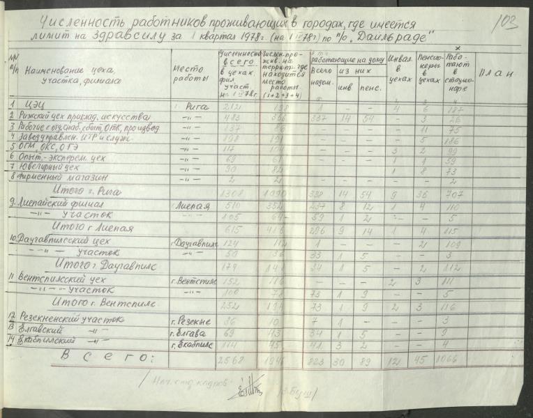 Fonds: Valsts uzņēmums "Daiļrade", tā priekšteči un pēcteči. Lieta: Kadru daļas gada atskaites par kadriem.
