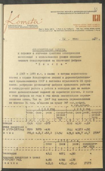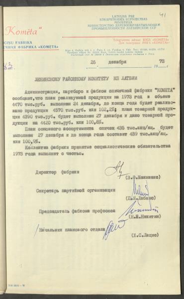 Fonds: Komēta, Valsts īpašuma fonda akciju sabiedrība. Lieta: Sociālistiskās sacensības izpildes rādītāji.