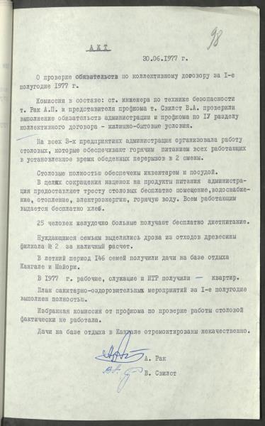 Fonds: Valsts rūpniecības un tirdzniecības firma "Rekords" un Akciju sabiedrība "Rekords". Lieta: Kolektīvā līguma pārbaudes akti.