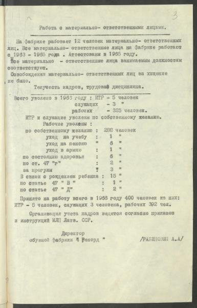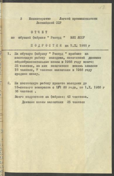 Fonds: Valsts rūpniecības un tirdzniecības firma "Rekords" un Akciju sabiedrība "Rekords". Lieta: Kadru daļas pārskati.