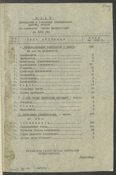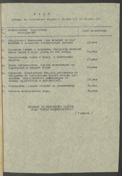 Fonds: Rīgas manufaktūra, valsts uzņēmums. Lieta: Darbinieku kvalifikācijas paaugstināšanas plāns.