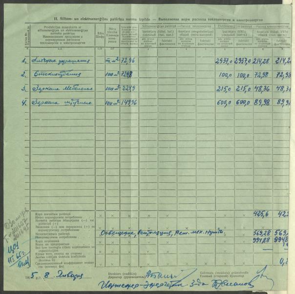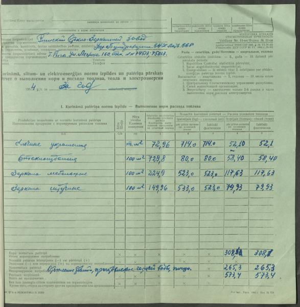 Fonds: Latvijas PSR Rūpniecības ministrijas Rīgas stikla un spoguļu rūpnīca. Lieta: Pārskats par izlietoto elektroenerģiju.