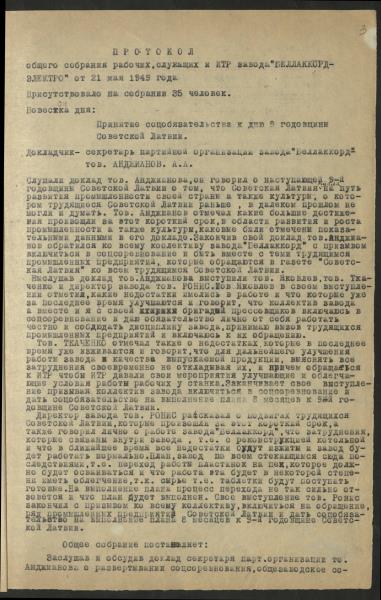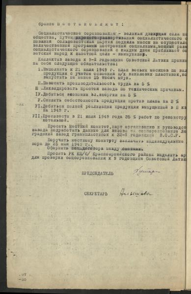 Fonds: Rīgas skaņu plašu fabrika "Melodija" un Ražošanas firma "RiTonis". Lieta: Fabrikas darbinieku sapulču protokoli 1949.-1950.g.