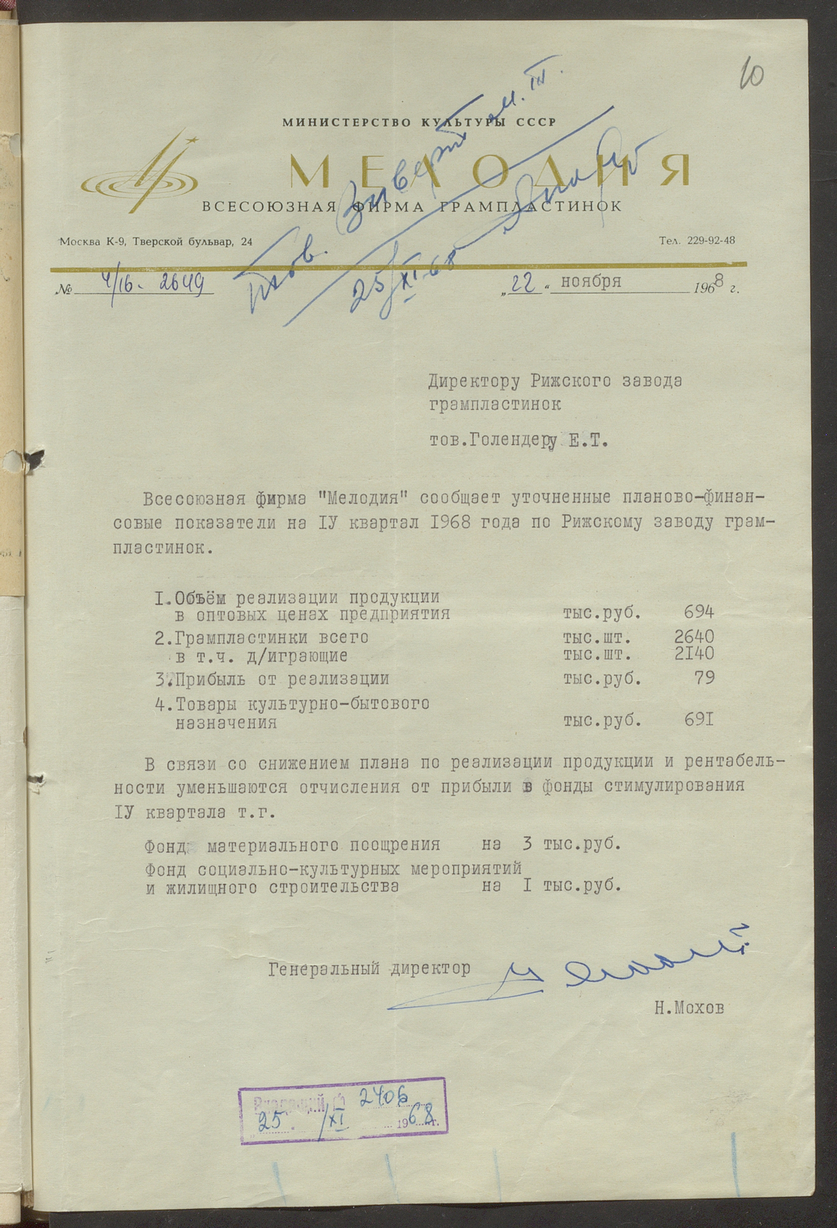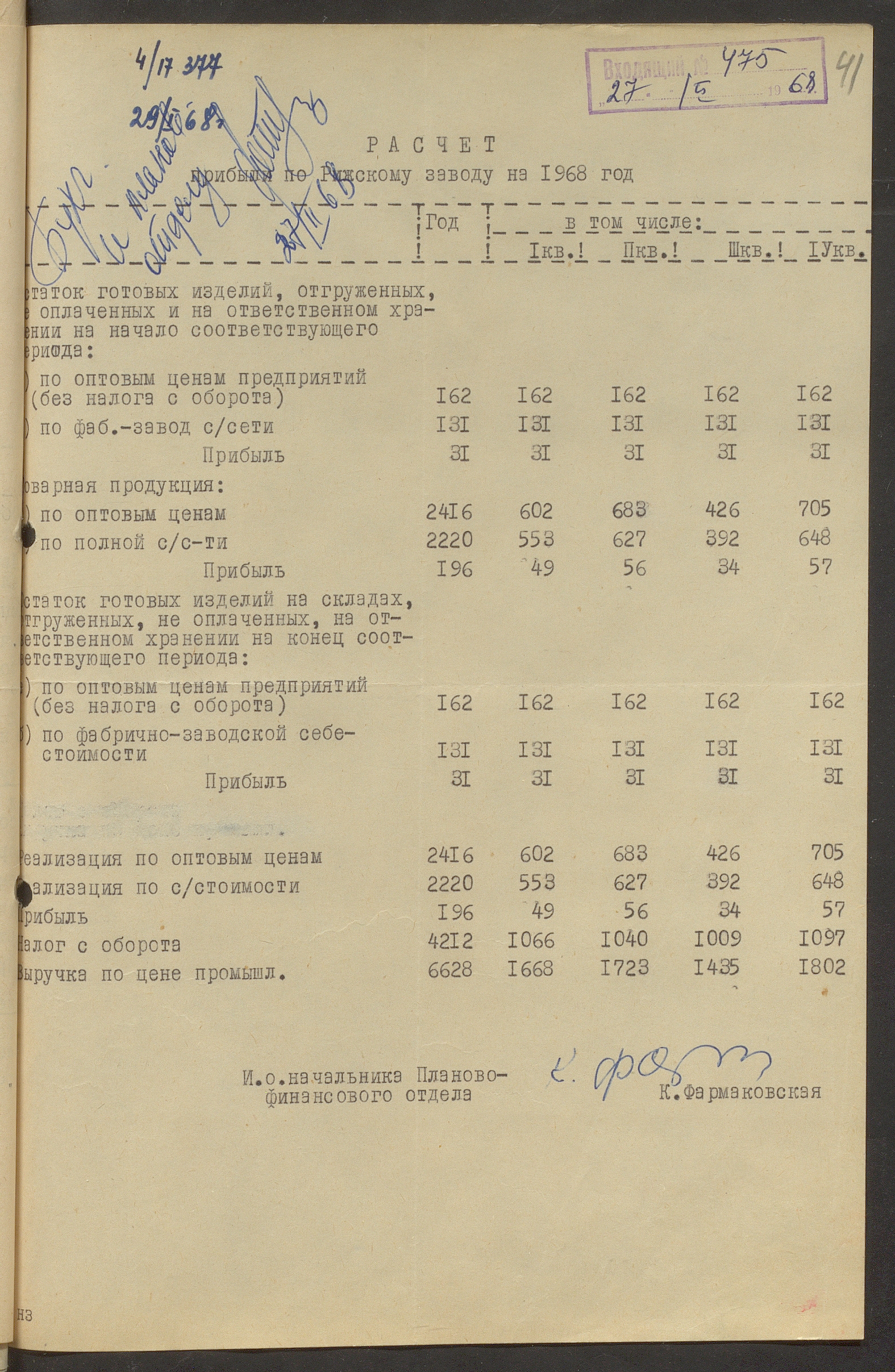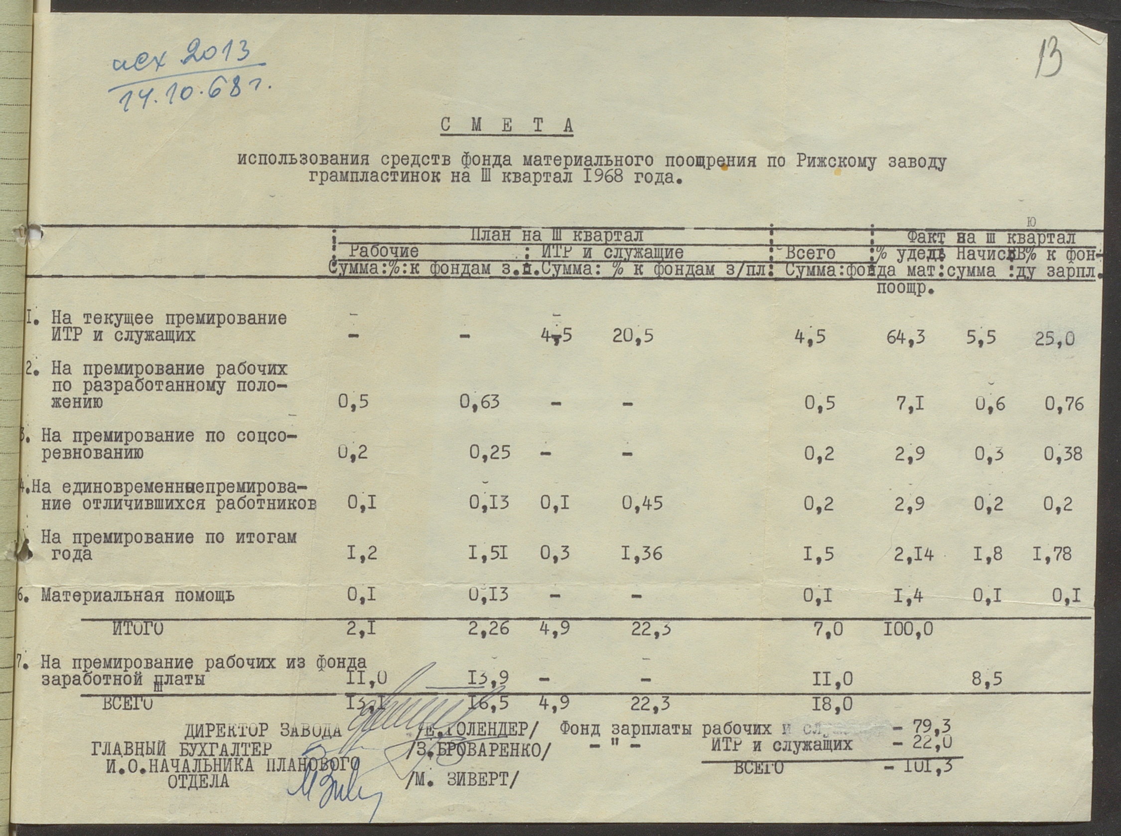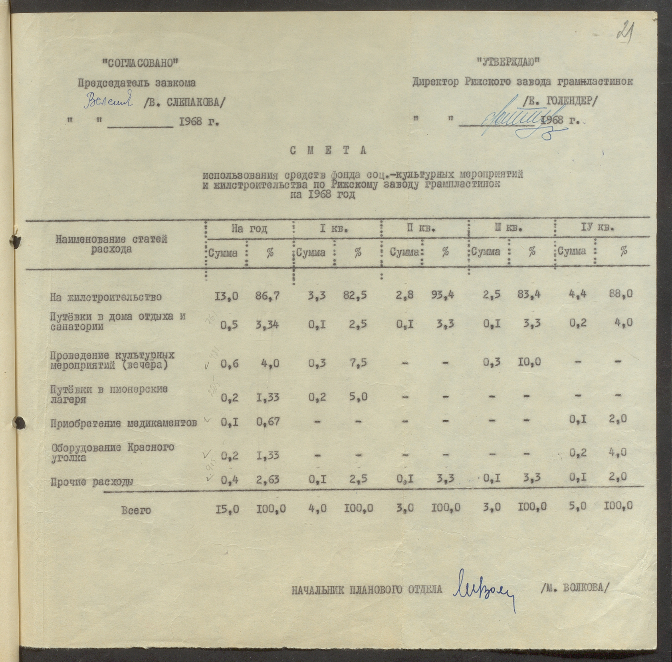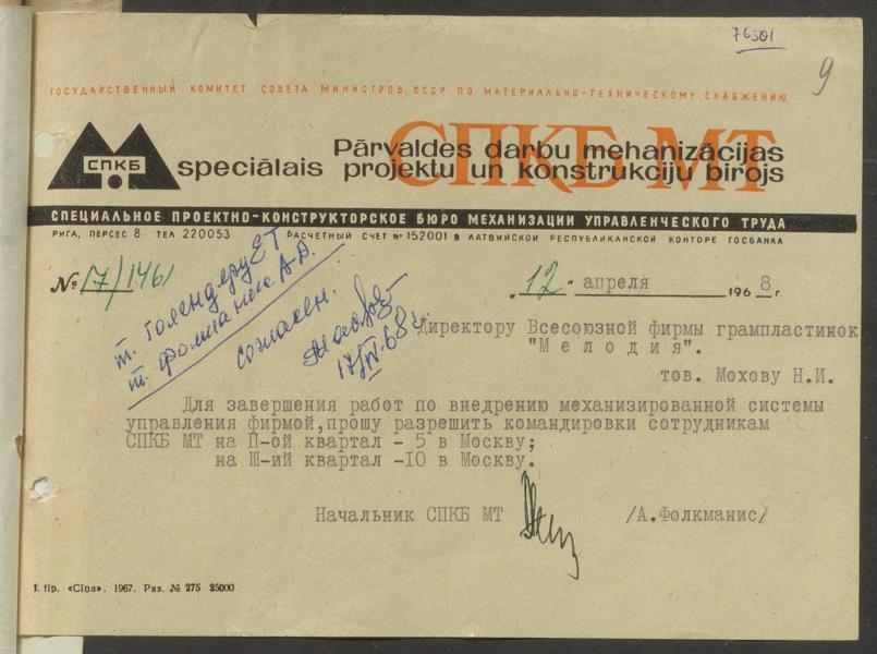 Fonds: Rīgas skaņu plašu fabrika "Melodija" un Ražošanas firma "RiTonis". Lieta: Fabrikas finanšu plāns 1968.gadam.