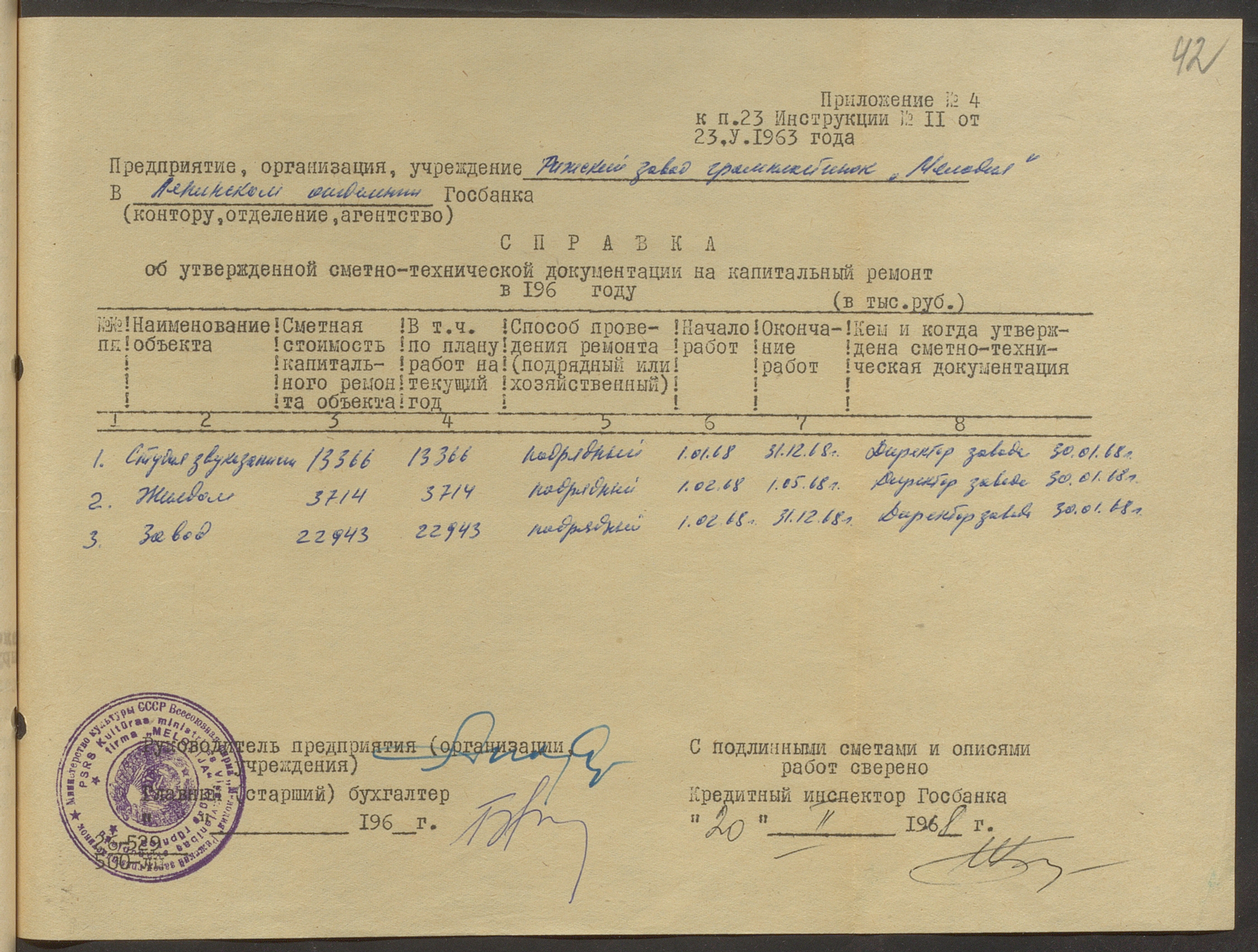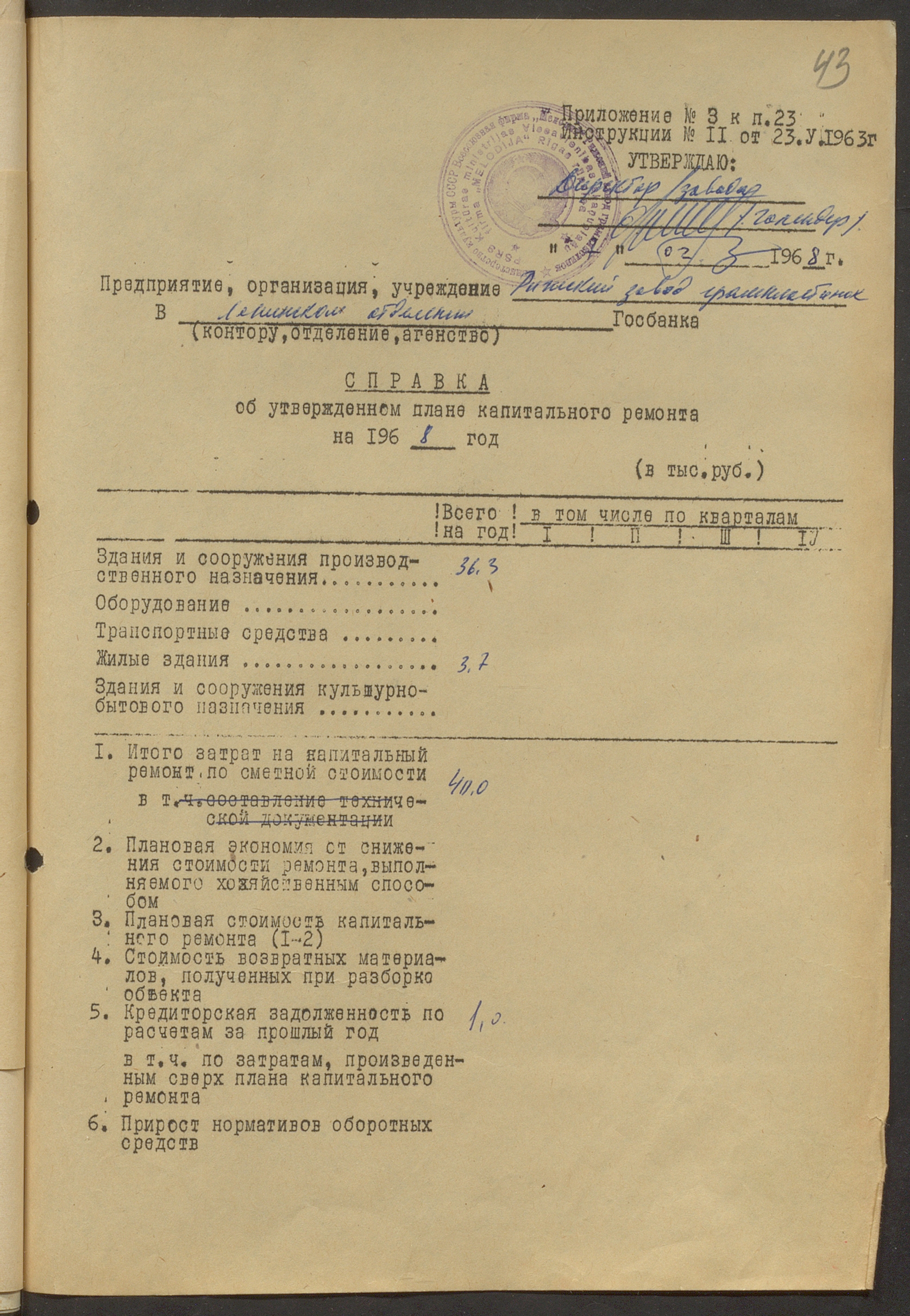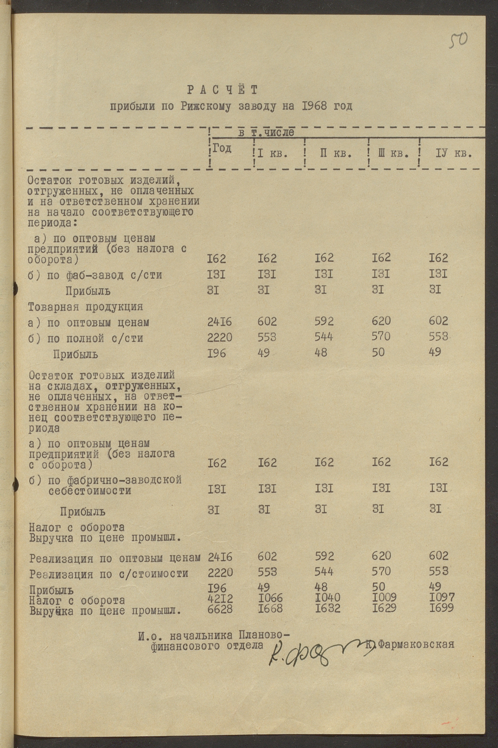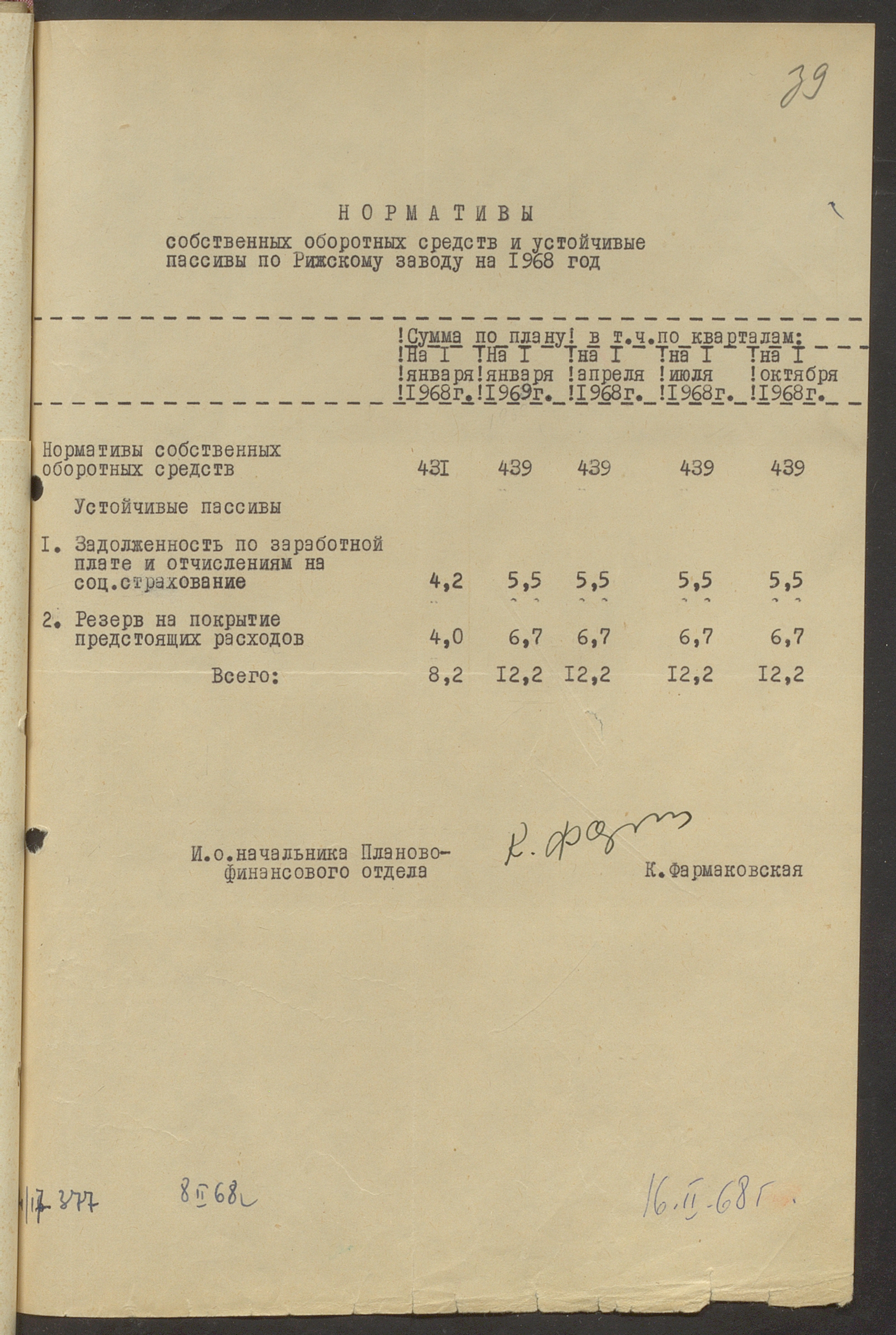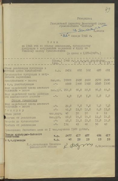 Fabrikas finanšu plāns 1968.gadam.