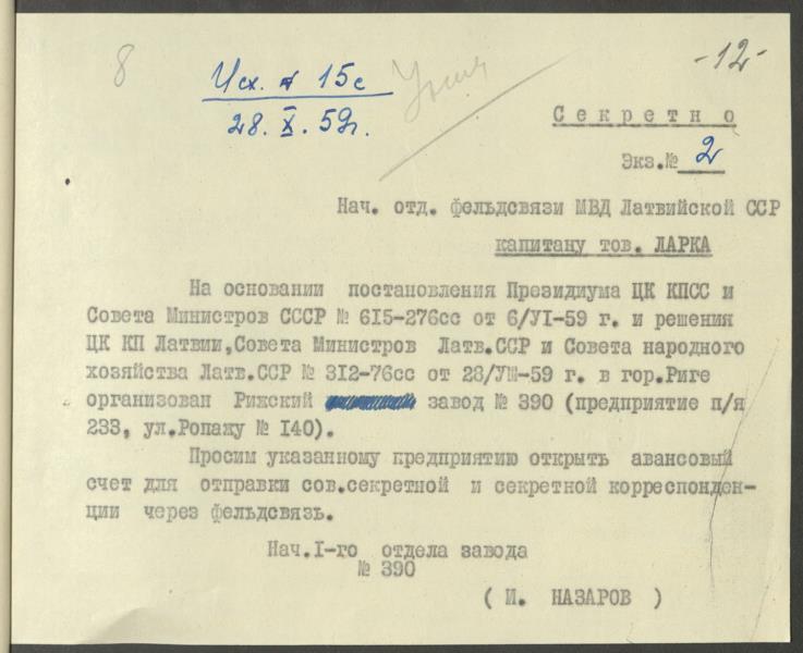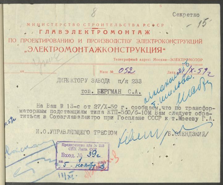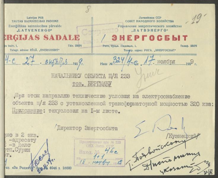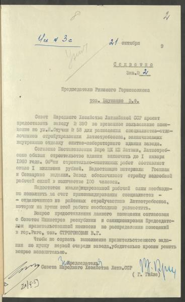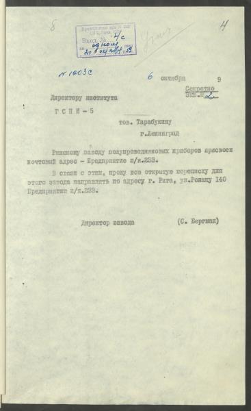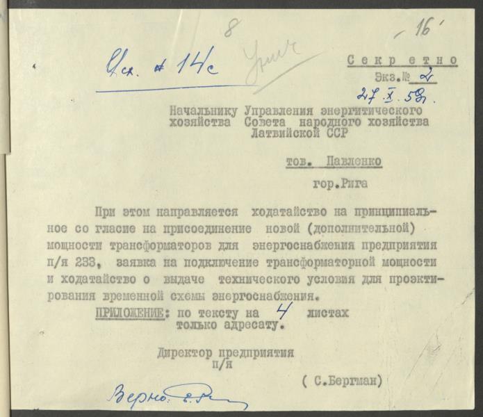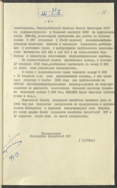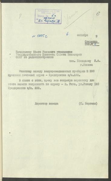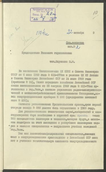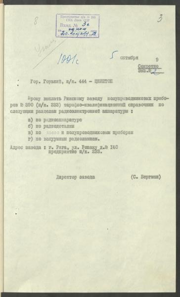 Fonds: Rīgas pusvadītāju aparātu rūpnīca, ražošanas apvienība "Alfa" un Akciju sabiedrība "Alfa". Lieta: Sarakste ar ministrijām darba organizācijas jautājumos.