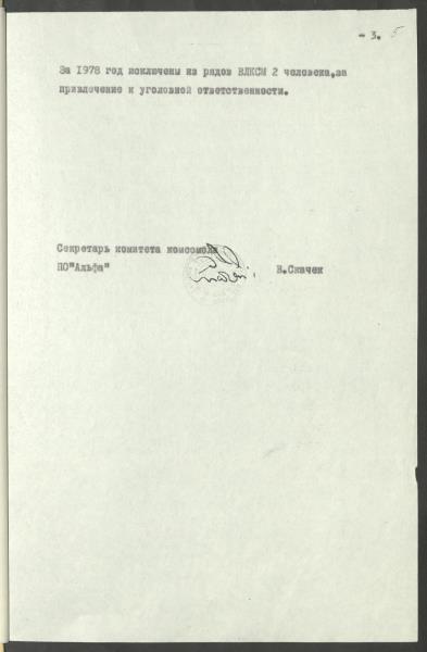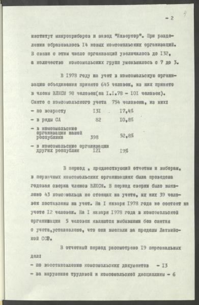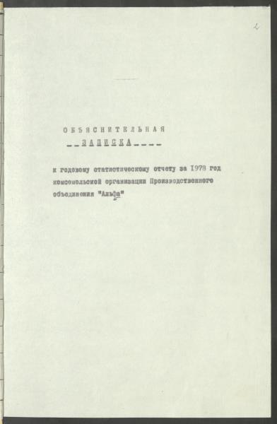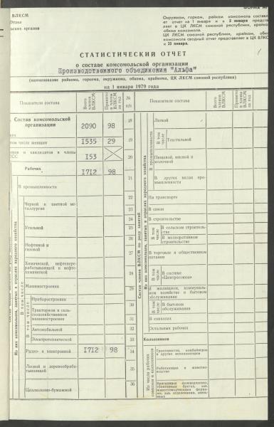 Fonds: Ražošanas apvienības "Alfa" LĻKJS komiteja. Rīgas pilsētas Proletāriešu rajons. Lieta: Uzņēmuma komjaunatnes organizācijas statistiskās atskaites par 1978.gadu.
