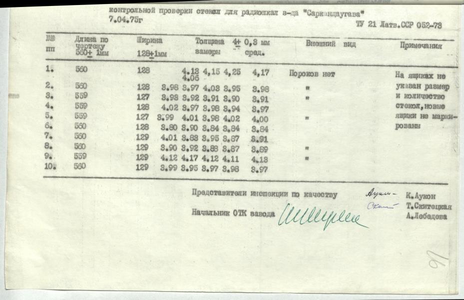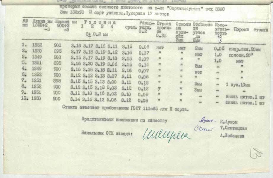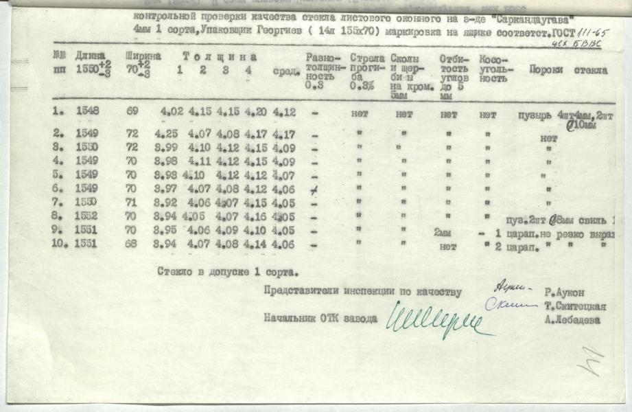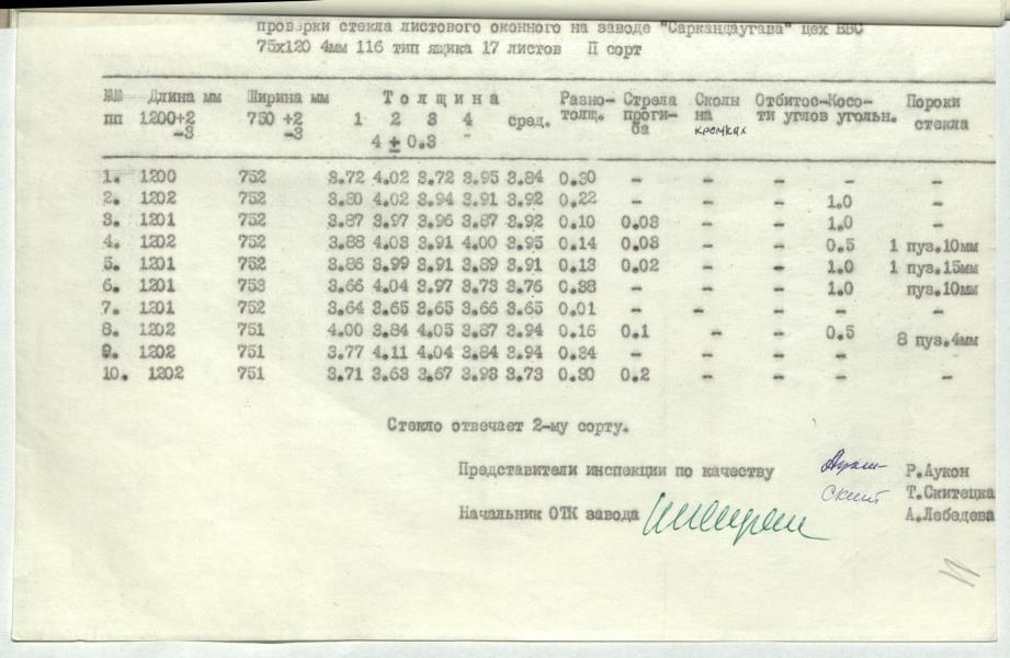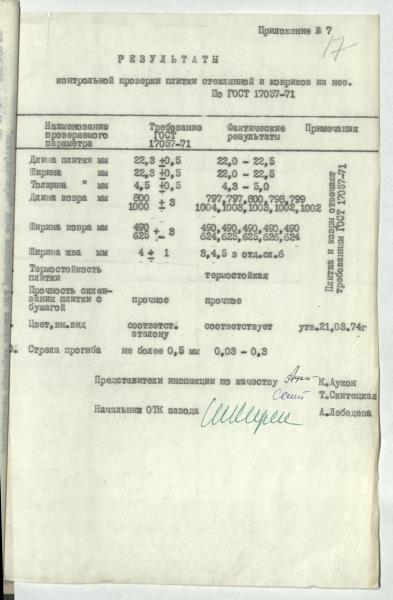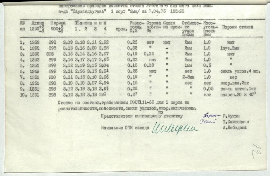 Stikla kvalitātes pārbaudes akts ar pielikumiem.
