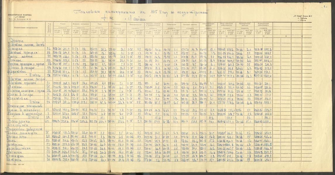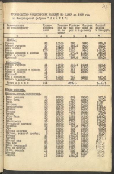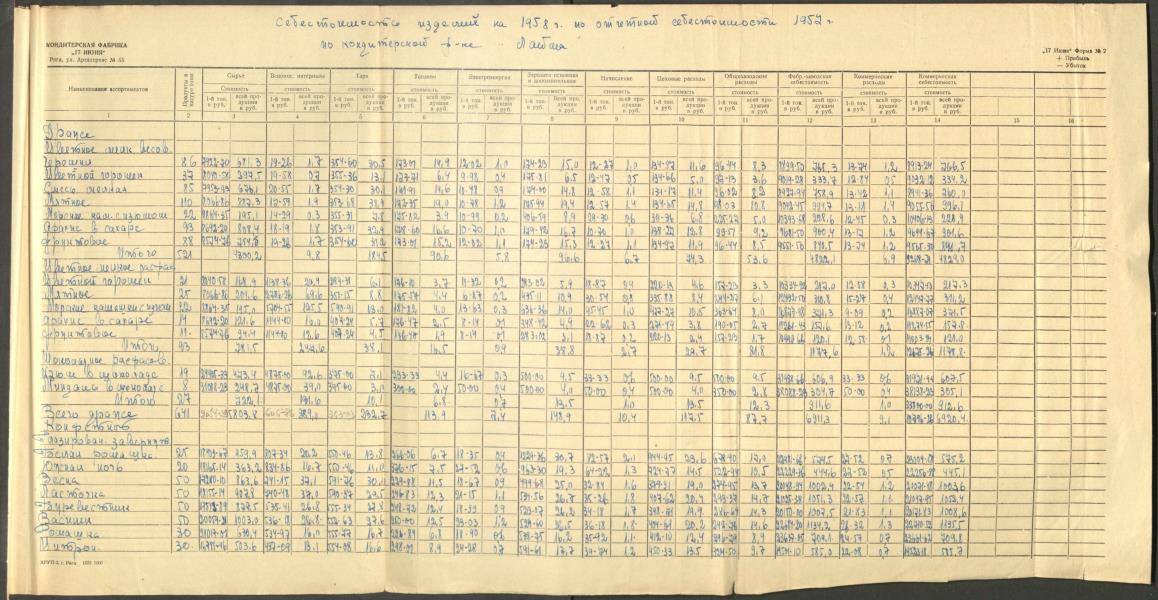 Fonds: Valsts ražošanas un tirdzniecības firma "Laima". Lieta: Produkcijas pašizmaksas plāni 1958.gadam.