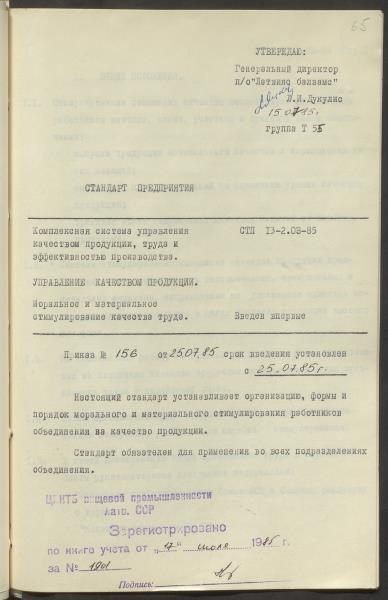 Uzņēmuma produkcijas kvalitātes standarts. Morālā un materiālā darba kvalitātes stimulēšana.