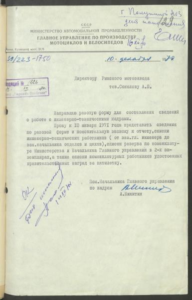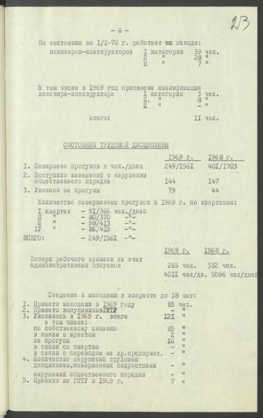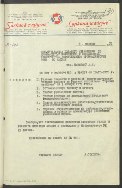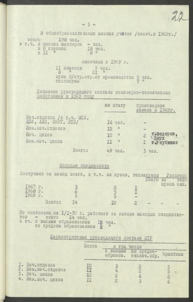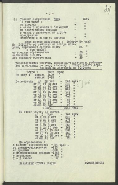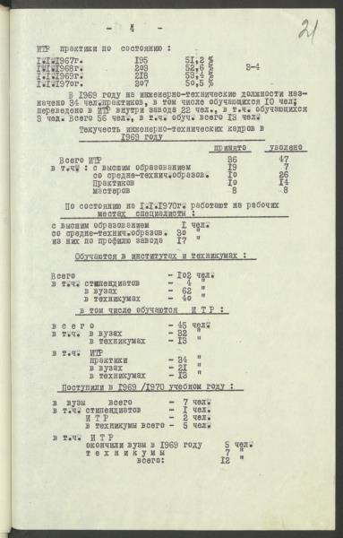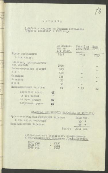 Fonds: Rīgas motorūpnīca, valsts akciju sabiedrība. Lieta: Pārskati par darbu ar kadriem 1970.gadā.