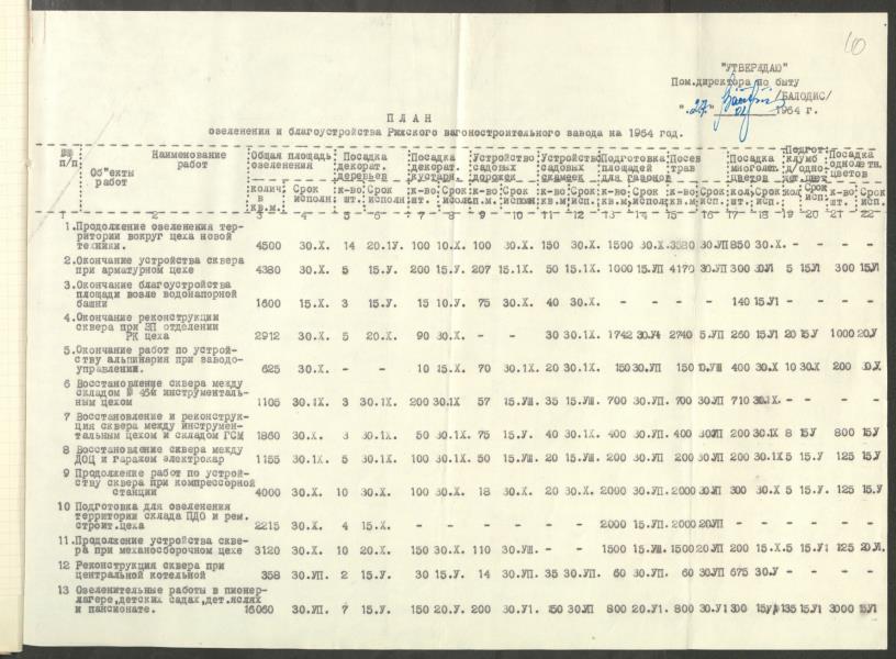 Fonds: Rīgas vagonu rūpnīca, akciju sabiedrība. Lieta: Plāni un pārskati par rūpnīcas siltumnīcu saimniecības iekārtošanu.