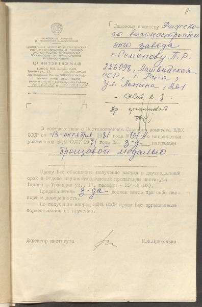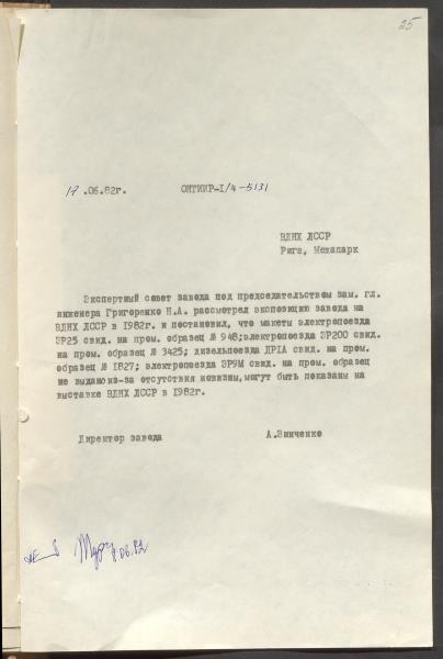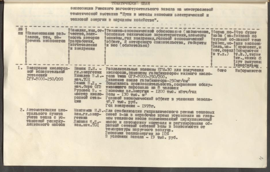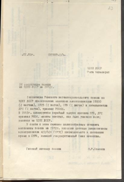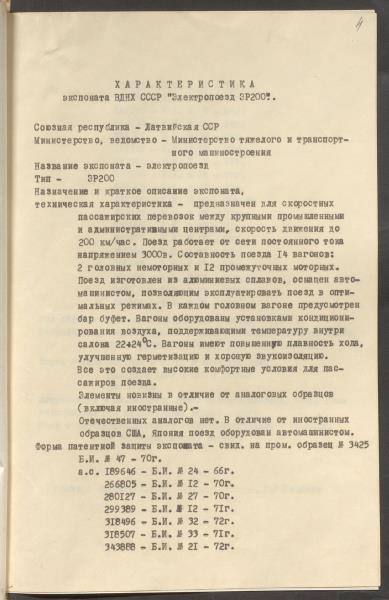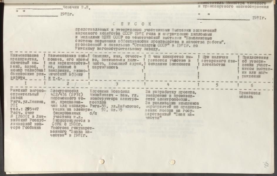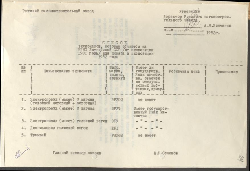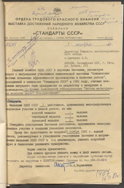 Fonds: Rīgas vagonu rūpnīca, akciju sabiedrība. Lieta: Dokumenti par rūpnīcas dalību PSRS Tautas sasniegumu izstādē 1980.-1982.g.