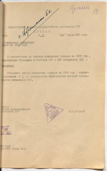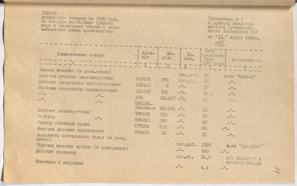 Fonds: Ausma, akciju sabiedrība. Lieta: Ražošanas plāni 1980.gadam.
