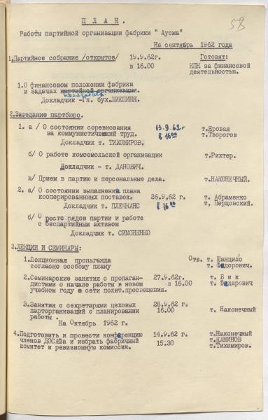 Fonds: Plastmasas izstrādājumu ražošanas apvienības "Ausma" LKP pirmorganizācija. Rīgas pilsētas Ļeņina rajons. Lieta: Partijas sapulču un partijas komitejas sēžu protokoli.