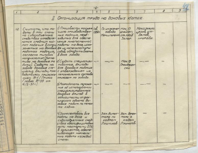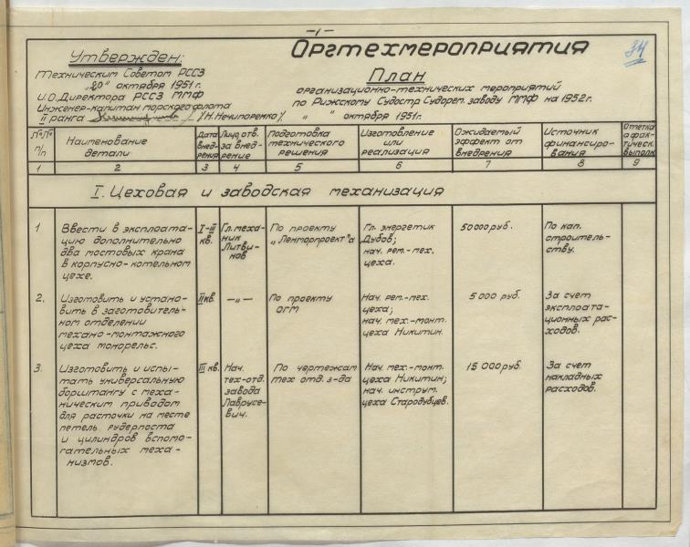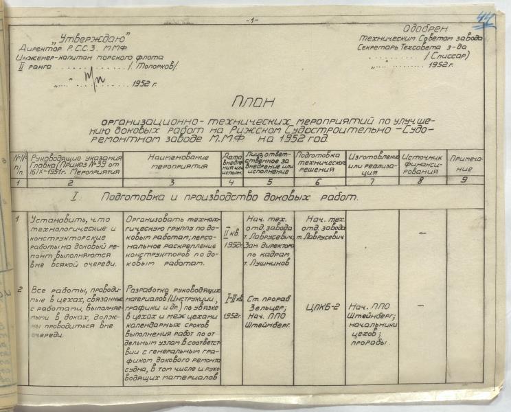 Fonds: "Rīgas kuģu remonta rūpnīca", valsts uzņēmums. Lieta: Rūpnīcas organizatoriski tehnisko pasākumu plāni tautsaimniecības attīstībai 1949.-1953.g.