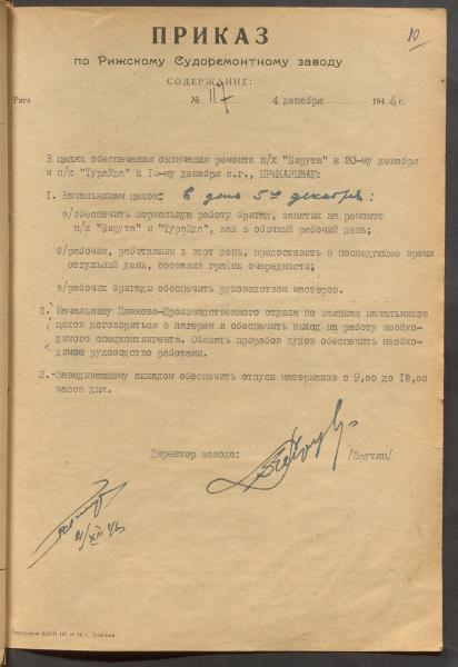 Fonds: "Rīgas kuģu remonta rūpnīca", valsts uzņēmums. Lieta: Pavēles par rūpnīcas pamatdarbību 1946.g.