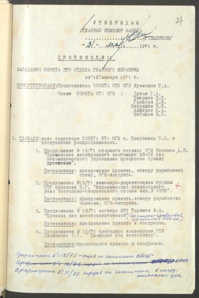 Fonds: "Rīgas kuģu remonta rūpnīca", valsts uzņēmums. Lieta: Rūpnīcas tehniskās informācijas biroja sēžu protokoli 1971.g.