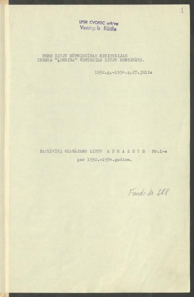 Fonds: Ventspils zivju konservu kombināts. Lieta: Grāmatvedība