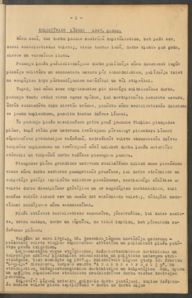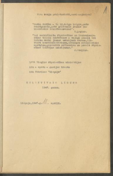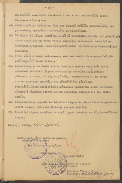 Fonds: Liepājas ādu rūpnīca, valsts uzņēmums. Lieta: 1947.gada kolektīvais līgums