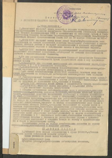 Fonds: Liepājas cukurfabrika, valsts akciju sabiedrība. Lieta: Liepājas cukura fabrikas nolikums