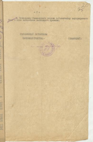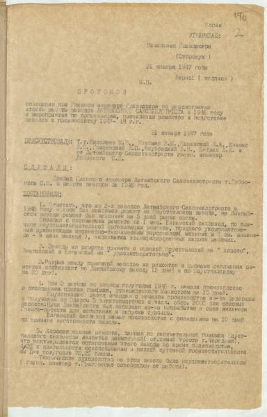 Latvijas cukurbiešu tresta protokols un pavēles par fabrikas darbvedību