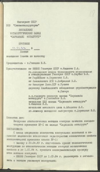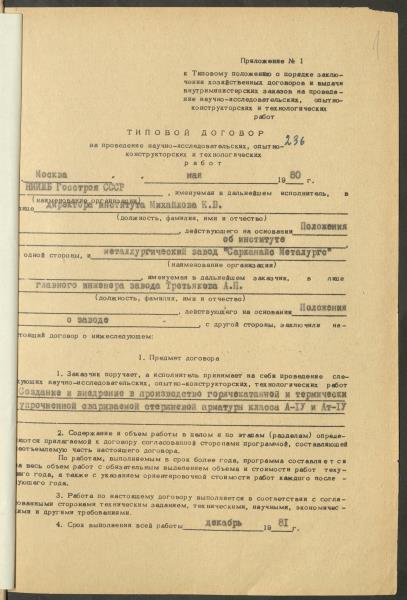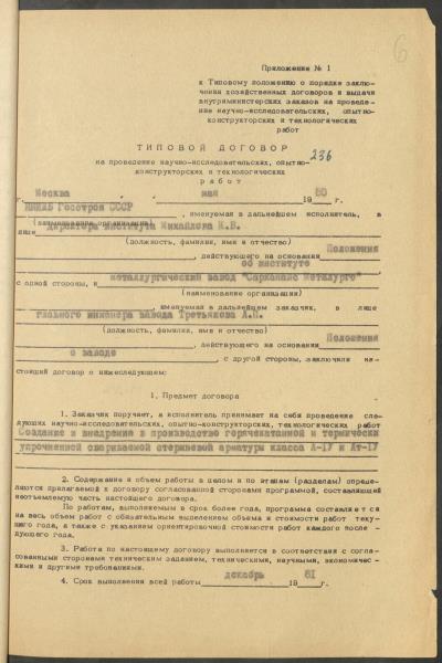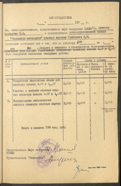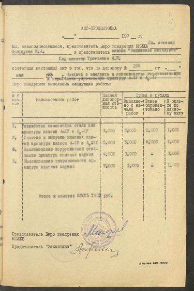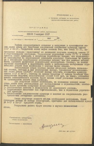 Fonds: "Liepājas metalurgs", valsts akciju sabiedrība. Lieta: Materiāli (plāni, līgumi, protokoli u.c.) par zinātniski pētniecisko darbu veikšanu stieņu armatūras A-IY un AT-IY klases izveidošanai