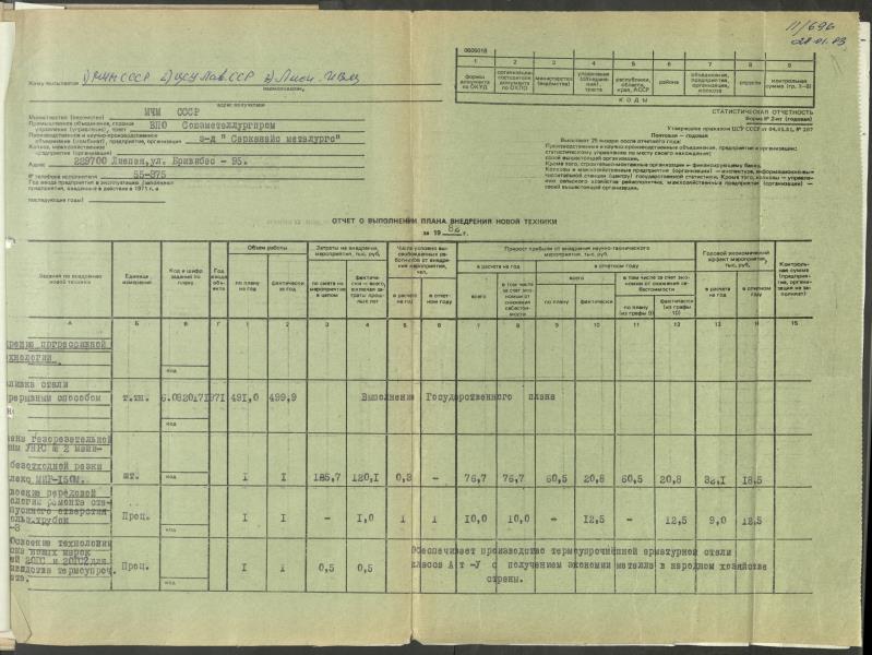 Fonds: "Liepājas metalurgs", valsts akciju sabiedrība. Lieta: Atskaites par jaunās tehnikas ieviešanu ražošanā 1982.g.