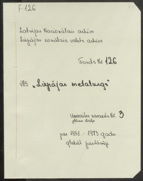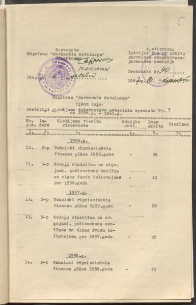 Fonds: "Liepājas metalurgs", valsts akciju sabiedrība. Lieta: Plānu daļa