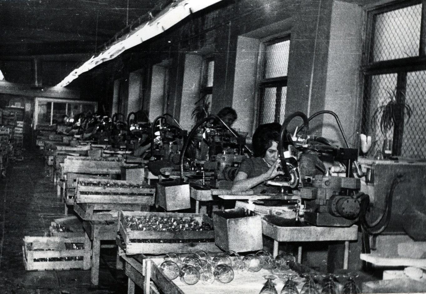 Stikla gravēšanas process Līvānu stikla fabrikā 20.gs. 70.gados