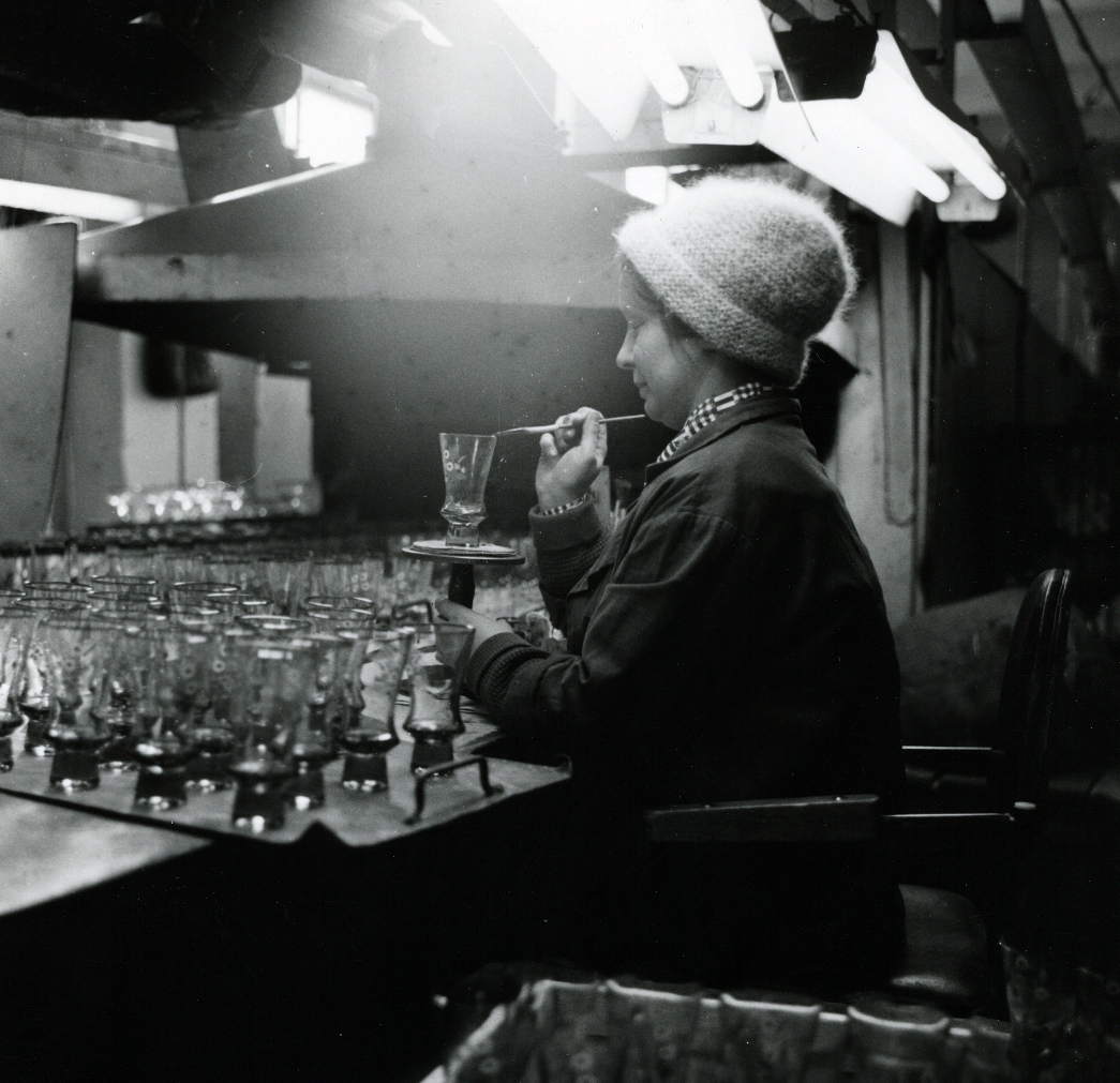 Stikla apgleznošana ar dabīgo zeltu Līvānu stikla fabrikā 20.gs.80.gados