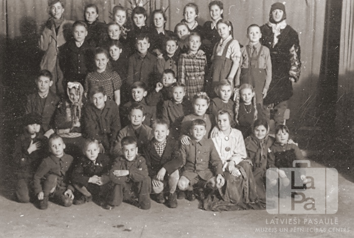 Fotogrāfijas dāvinātāja rakstītais atmiņu stāsts par bēgļu gaitām un bēgļu nometnēm: "Mans trimdas sākumceļš. Tūkstoš deviņi simti četrdesmit ceturtā gada vasaru pavadīju kopā ar savu brāli Jāni Stendes pagasta Jāņa Adamoviča vārdā nosauktajā 4. klasīgajā pamatskolā. Šinī skolā mana tēva māsa strādāja kā skolas pārzine. Vasaras sākums, kā atceros, pagāja mierīgi. Pēc Jāņiem viss mainījās. Uz ceļiem parādījās bēgļu vezumi. Bija daudz krievu bēgļu, kā arī latvieši no Vidzemes un Latgales. Visi bēga no krieviem, kuri neatlaidīgi tuvojās Rīgai. Par vasaru vecāki dzīvoja Rīgā. Vasaras otrā pusē vecāki bija plānojuši ierasties Stendē, bet tam gandrīz tika "pārvilkta strīpa”. Krievi kaut kad septembra sākumā izlauzās no Jelgavas cauri uz Tukumu un Rīgas jūras līci. Ceļš no Rīgas bija nogriezts. Bet šis parrāvums ilga tikai pāris dienas, jo tika likvidēts dažas dienas vēlāk. Ceļš bija brīvs, un vecāki ieradās Stendē. Izbraucām no Stendes agrā, aukstā, miglainā oktobra rītā. (Ja nemaldos, bija oktobra otrā puse). Braucām uz Liepāju. Liepājā mēs iebraucām tās pašas dienas vēlā vakarā. Pāris dienas pavadījām Tautas Palīdzības namā. Pēc pāris dienām devāmies tālāk. Vēlā pēcpusdienā mūs veda uz ostu, lai kāptu uz kuģa un dotos trimdā uz Vāciju. Kuģi sauca, ja atceros pareizi, "Volta”. No Liepājas izbaucām dziļā tumsā. Visi stāvēja uz klāja un dziedāja "Dievs, Svētī Latviju”. Otrās dienas vēlā pēcpusdienā iebraucām Dancigā un tālāk ar vilcienu uz Gotenhafenu, lai atutotos. Tur pavadījām pāris dienas un tad tālāk ar vilcienu uz Arnsvaldi. Mūs novietoja vienā skolā. Šeit atradās arī bēgļi no Igaunijas, Lietuvas un Čehoslovākijas. Šinī mazajā, jaukajā pilsētiņā pavadījām pāris mēnešus. Sagaidījām šeit 18. novembri, Ziemassvētkus, kā arī Jauno gadu. Krievu armijai tuvojoties, mūs atkal sasēdināja vilcienā un gar Baltijas jūras krastu veda uz rietumiem. Mēs braucām cauri Neustadi(?), Latenburgu (?), Stolpi (?), Koeslinu uz Štettinu. Štettinā dienu pavadījām vilcienā. Schaalsee pilsēta bija izbumbota. Ceļš tālāk veda uz Mecklenburgas pilsētu Schwerinu. No Schwerinas tālāk mūsu ceļš veda uz mazu pilsētiņu – Gadebusch. No Gadebuschas ar buļļu pajūgu braucām uz 7 km attālo muižu "Gut Dutzow”, kura atradās liela ezera "Schaalsee” krastā. Šeit mēs sagaidījām kara beigas. Maija vidū, krieviem okupējot Meklenburgu un tuvojoties Gadebuschai, atstājām "Gut Dutzow”, pārgājām Schleswig Holstein robežu un devāmies uz rietumiem. Gājām cauri Ratzeburgai, Moehlnai (Mölln), Schwarzenbeckai un tālāk uz Bergedorf, jo tur, kā baumoja, kaut kur tuvumā atradās maza pilsētiņa, kurā bija izveidota bēgļu nometne. Mūsu grupu vadīja makslinieks Ernesta Ābele. Šī mazā pilsētiņa bija Bernsene. Bernsenes nometni slēdza apmēram pusotra gadu vēlāk. Mūs visus pārvietoja vai nu uz "Saules” nometni vai arī uz Špakenbergu. Špakenbergā beidzu pamatskolu un sāku apmeklēt "Saules” ģimnāziju Gestahtā. Gadu vēlāk slēdza Saules ģimnāziju un visus skolēnus nosūtīja uz Neuštati. Izceļošanai esot pilnā sparā, arī mēs 1950. gada janvārī pārcēlāmies uz transīta nometni Ventorfā. Pēc kādas nedēļas devamies tālāk uz Brēmerhāfenu un beidzot ar kuģi "General Muir” pāri okeānam uz Ņujorku. No Ņujorkas tālāk ar vilcienu uz Portlandi Oregonā. Dr. Andris Adamovičs"