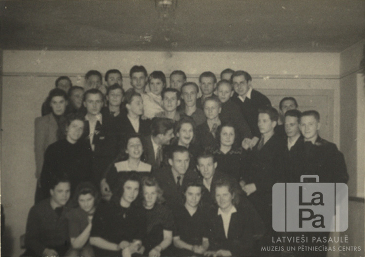 Fotogrāfijas dāvinātāja rakstītais atmiņu stāsts par bēgļu gaitām un bēgļu nometnēm: "1944. gada 5. oktobrī devāmies projām no Rīgas. Ģimenē bijām mamma Ella Riekstiņa, papus Pēteris Riekstiņš un septiņi bērni: Vija, Ojārs, Astrīda, Mundrīte, Daila, Brigita un Lilita. Ar pēdējo kuģi no Rīgas tikām līdz Dancigai. Man 1944. gadā bija 14 gadi. Sākumā nemaz nebijām paredzējuši braukt ar kuģi uz Vāciju. Māju Dolē nobumboja krievi, bombardēdami Spilvi. Rīgā apmetāmies pie krusttēva. Paši nekādas bēgšanas iespējas nemeklējām, bet pēkšņi ieradās divi leģionāri un teica, ka divu stundu laikā mums jābūt gataviem. Ar aizbraukšanu nemaz nebijām rēķinājušies, bet laikam jau tā bija lemts, jo pēc 14. jūnija paziņas teica tēvam, ka esam nākamajā sarakstā. No Dancigas tālāk braucām ar vilcienu līdz Hamburgai un tad ar vilcienu atkal tālāk apmēram 30 km līdz Bernsenai. Tur nometnē tad bija kādi 100 cilvēki. Palikām Bernsenā līdz kara beigām, bet 1947. gadā mūs pārcēla uz Saules nometni Gēsthahtā. Kad sākās izceļošana, tad īsāku laiku bijām Špakenbergā, Ventorfā, Lībekā un atpakaļ Špakenbergā. Mums lielās ģimenes dēļ bija grūti dabūt galvotājus jeb sponsorus. Jaunākajai māsai bija tikai 7 gadi. Luterāņu "velfēr” organizācija bija mūsu sponsori un tikām projām. Cilvēki, kuri mūs uzņēma, bija gaidījuši ģimeni ar sešiem puišiem, bet sagaidīja sešus skuķus."