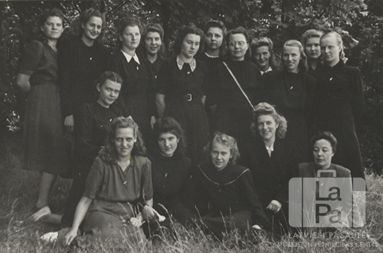 Studenšu korporācijas "Spīdola" piektā coeta meitenes Pinnebergā (angļu zonā) 1948. gada rudenī. Pirmajā rindā, no kreisās: Vija Lauge, Astrīda Riekstiņa (pr. Jansone), Ruta Prauliņa, Inese Čukste un Rasma Bētiņa. Otrajā rindā (aiz V. Lauges): Anna Blumberga. Stāv, no kreisās: Mirjama Plensnere, Vita Dzērve, Ilona Lemkina, Dzidra Druvaskalne, Zigrīda Plūmane, Aira Nodieva, audzinātāja Velta Pētrsone, Hermīne Karitone, Biruta Tormane, Inta Vilka un Aina Celle.