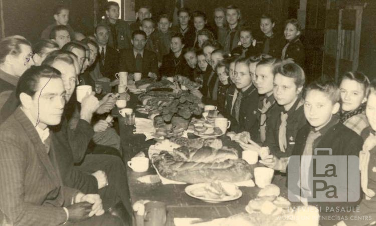 Ogres 38. skautu vienības skauti un Juglas 47. gaidu vienības gaidas no Eslingenes nometnes (amerikāņu zonā) ciemos pie bijušiem latviešu leģionāriem, kuriem bija jādzīvo prom no galvenās nometnes tā sauktajā "Kalna kolonijā".