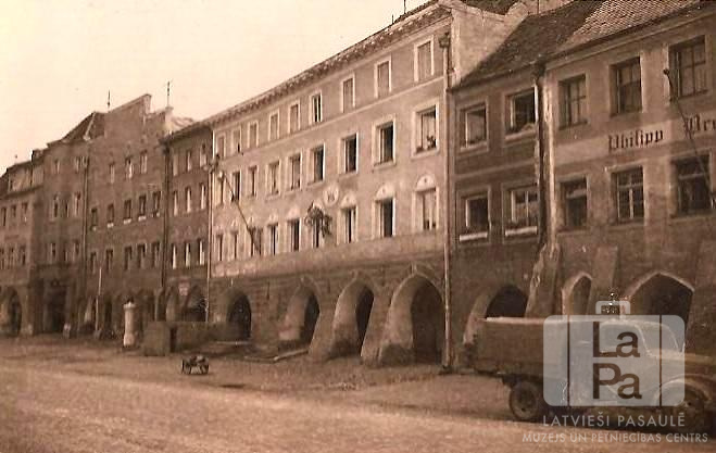 Ielas skats uz ēku rindu Neietingā (amerikāņu zonā). Ēku pirmie stāvi ir ar izliektām velvēm. Priekšplānā, labajā pusē, ir automašīna. Par šo gadījumu Ludmila Stīvriņa atceras: "Ēka bildes vidū bija mūsu DP nometne Neietingā. Šī ēka bija agrāk viesnīca un bija būvēta 18. gadsimtā. Mammai un man bija maza istabiņa otrā stāva aizmugurē, un mums bija skats uz dārziem un kalna mežiem, kuros es varēju lasīt zemenes, sēnes, avenes un smaržojošas lillā vijolītes. Mums istabā bija ūdens krāns. Mūsu stāvā bija apmēram divpadsmit tādas istabas, katrā istabā dzīvoja pa ģimenei."
