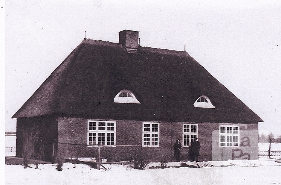 Vidusskolas vienstāvu ķieģeļu ēka Hokensbīles nometnē pie Hūzumas (angļu zonā). Vienstāvu ēkai ir augsts, slīps jumts. Pie ēkas stāv divi cilvēki. Zeme apkārt ir apsnigusi. Par šo gadījumu Maija Ikstruma (dz. Noriņa) atceras: "Par vidusskolas audzēkņiem rūpējās Eduards Ritmanis, noorganizējot vidusskolu Hokenbīlā."