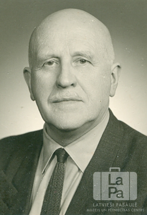 Jāņa Orleāna portrets Kleinkecā (amerikāņu zonā) izceļošanas dokumentiem. Plikgalvains pusmūža vīrietis uzvalkā, ar kaklasaiti.